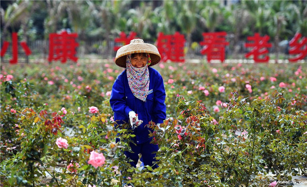 在海南三亚博后村,村民李玉梅在玫瑰谷园区内修剪玫瑰(2018年3月6日摄)。新华社记者 郭程 摄