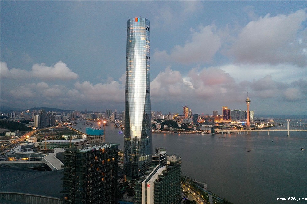 珠海中心大厦和远处的澳门(9月13日摄,无人机照片)。 新华社记者 陈晔华 摄