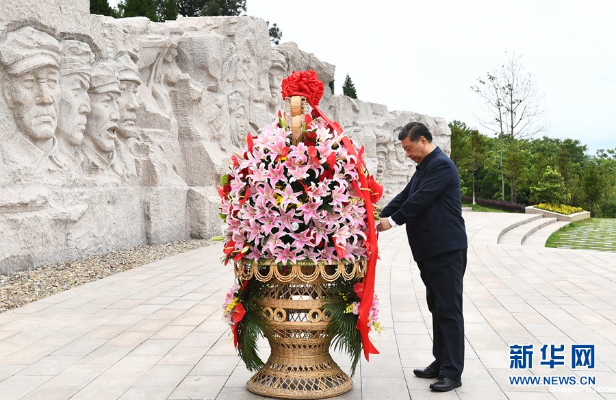 4月25日至27日,中共中央总书记、国家主席、中央军委主席习近平在广西考察。这是25日上午,习近平在位于桂林市全州县的红军长征湘江战役纪念园,向湘江战役红军烈士敬献花篮。新华社记者 谢环驰 摄