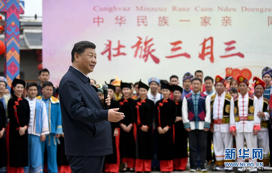 广西是我国少数民族人口最多的自治区。27日上午,习近平来到位于南宁市邕江之畔的广西民族博物馆,参观壮族文化展。博物馆外,三月三“歌圩节”壮族对歌等民族文化活动正在这里集中展示。习近平强调,广西是全国民族团结进步示范区,要继续发挥好示范带动作用。各民族共同团结进步、共同繁荣发展是中华民族的生命所在、力量所在、希望所在,在全面建设社会主义现代化国家的新征程上,一个民族都不能少,各族人民要心手相牵、团结奋进,共创中华民族的美好未来,共享民族复兴的伟大荣光。